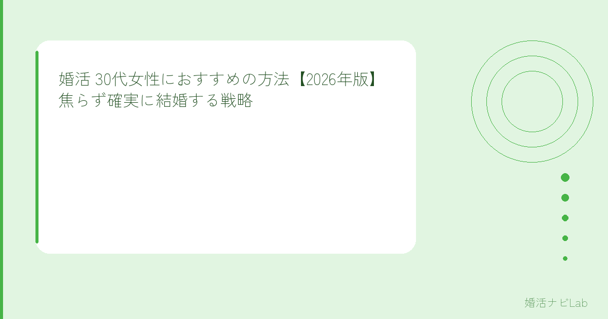 婚活 30代女性におすすめの方法【2026年版】焦らず確実に結婚する戦略