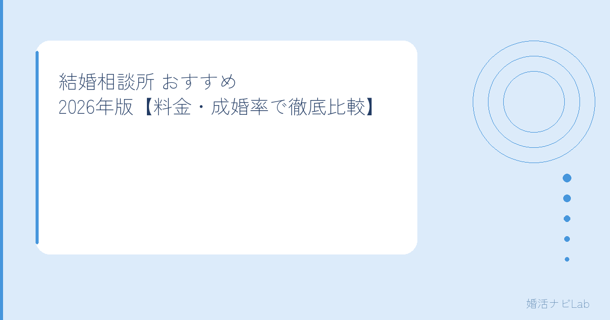 この記事では、2026年におすすめの結婚相談所を料金・成婚率・サポート内容で比較していきます。