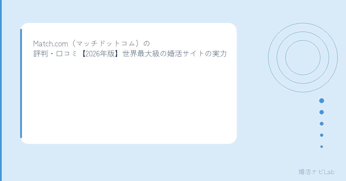 この記事では、2026年最新のMatch.comの評判・口コミを良い面も悪い面も包み隠さず紹介します。